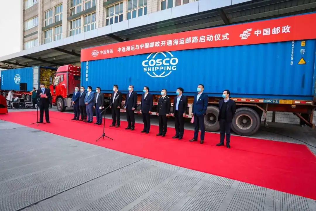 (4月23日,中國郵政集團(tuán)有限公司與中國遠(yuǎn)洋海運(yùn)集團(tuán)有限公司在上海舉行合作啟動(dòng)儀式)
