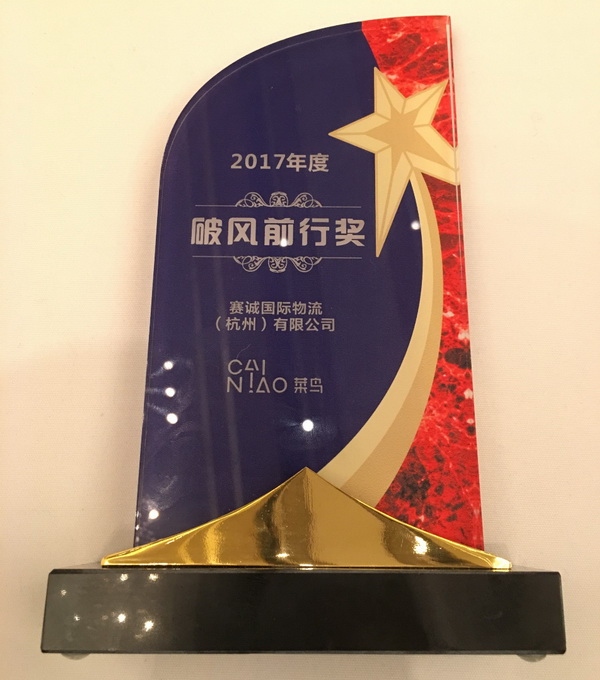 賽誠(chéng)國(guó)際物流(杭州)有限公司榮獲菜鳥聯(lián)盟2017年度“破風(fēng)前行獎(jiǎng)