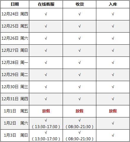 請您根據(jù)以上時間表和說明,提前做好出貨安排。因假期給您帶來的不變,敬請諒解!