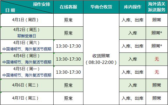 針對臨近的耶穌受難日、清明節(jié)、復活節(jié)公共假期,結合我司運營情況,假期間的專線運營服務安排如下: